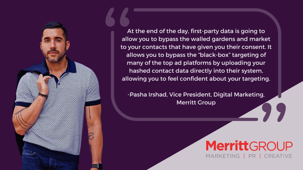 At the end of the day, first-party data is going to allow you to bypass the walled gardens and market to your contacts that have given you their consent. It allows you to bypass the “black-box” targeting of many of the top ad platforms by uploading your hashed contact data directly into their system, allowing you to feel confident about your targeting. Ensuring your ability to drive up match rates takes on added importance given the current landscape.